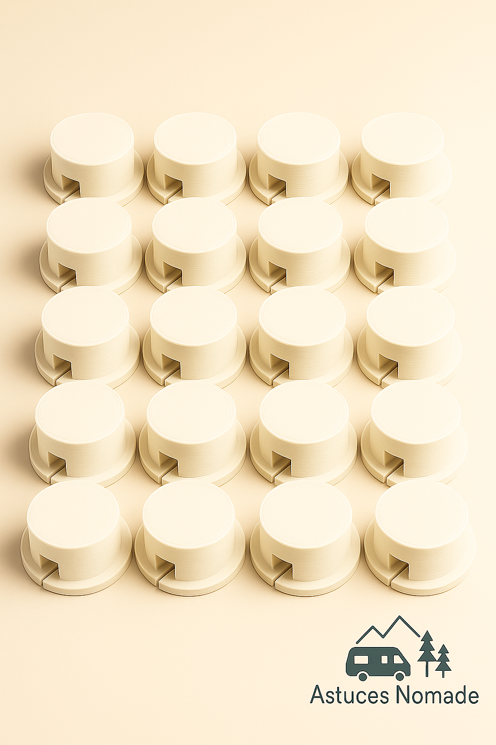 Chut’Lumière est un petit accessoire imprimé en 3D qui se clipse simplement sur les voyants lumineux ou feux de gabarit intérieurs de votre van ou camping-car.