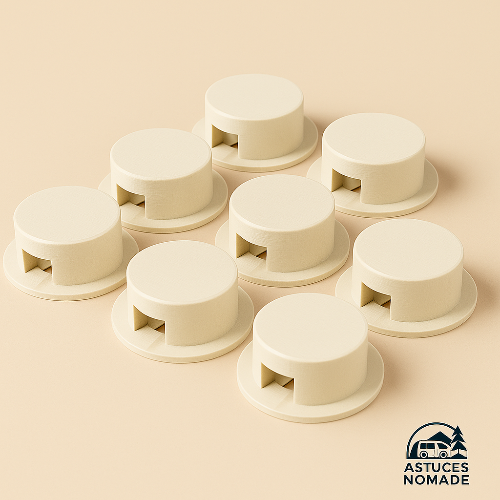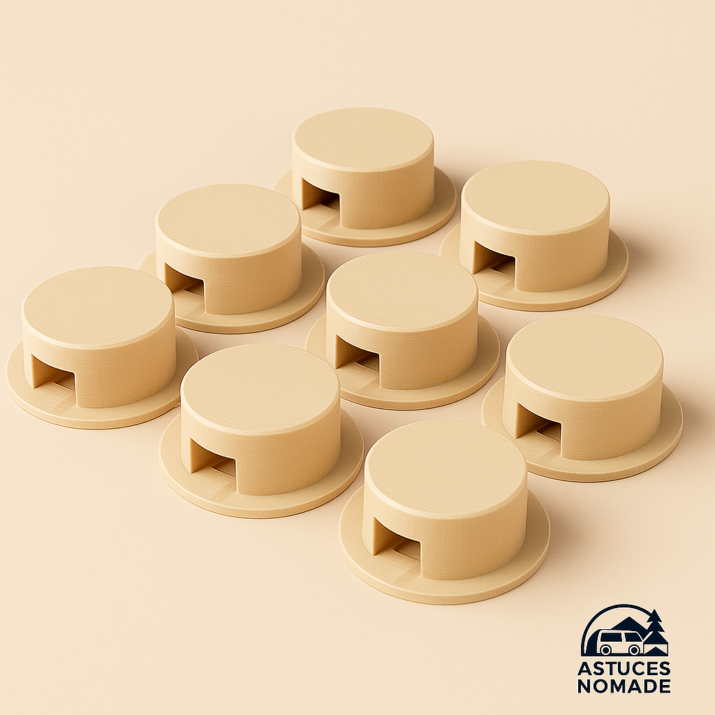 Chut’Lumière est un petit accessoire imprimé en 3D qui se clipse simplement sur les voyants lumineux ou feux de gabarit intérieurs de votre van ou camping-car.